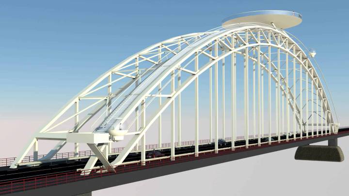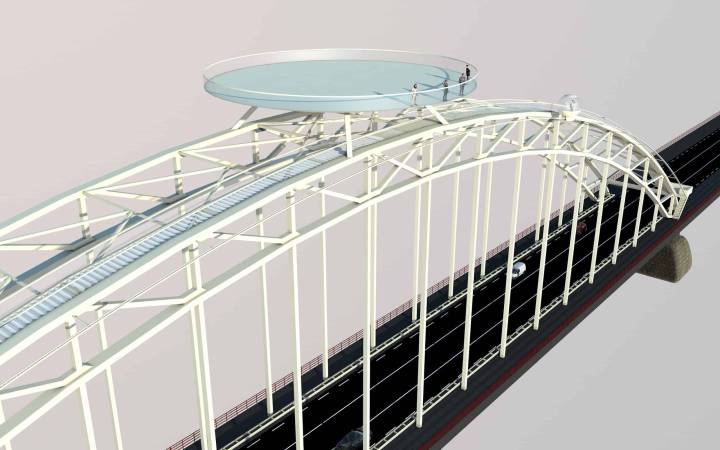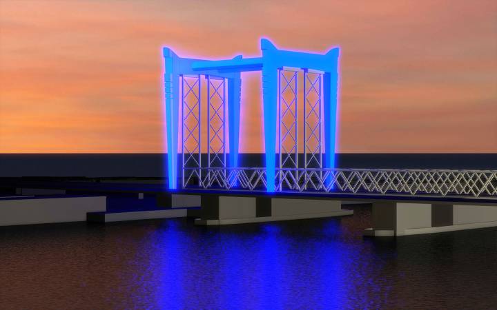 We stellen we voor om de brug niet te profileren door haar te bewerken, maar om de stoere vorm puur voor zichzelf te laten spreken, met name het omhoog rijzende volume.