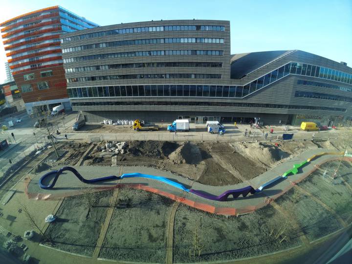Kunstenaar Jan van der Ploeg laat op zijn beurt met zijn prachtige kleurencombinaties de Backbone tot leven komen. Zo maakten we gezamenlijk de ideale plek om even lekker te zitten, te rusten en te genieten van een kleurrijke omgeving. Leuk detail: deze ruggengraat is het grootste werk dat Jan van der Ploeg ooit onder handen nam.