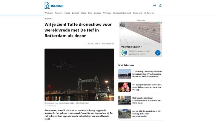 The performance is independent production by three collaborative partners: Mothership, Anymotion Productions and Video Agency. Mothership is a concept developer in the arts, also known for the last New Year’s Eve drone show and the show on May 5th 2020, when they created a drone show on Bevrijdingsdag (Liberation Day) to pay tribute to those who work day and night for the freedom and safety of others during the covid-19 pandemic. Anymotion Productions was responsible for the execution and production of the drone show, while Video Agency – under the direction of Felix Kops – recorded and edited the show into a video. The campaign came about on its own initiative. “Doing nothing was not an option. We want to help. Sharing our emotions and showing how horrible we think the current situation is. All partners felt a strong wish to send a message with the video. It is a short but powerful message powerful: “Peace as soon as possible”, says Jeroen Everaert.