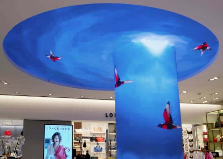 On this LED surface, a 10-minute loop of moving images created by motion designer Eline Wieland sparkles.