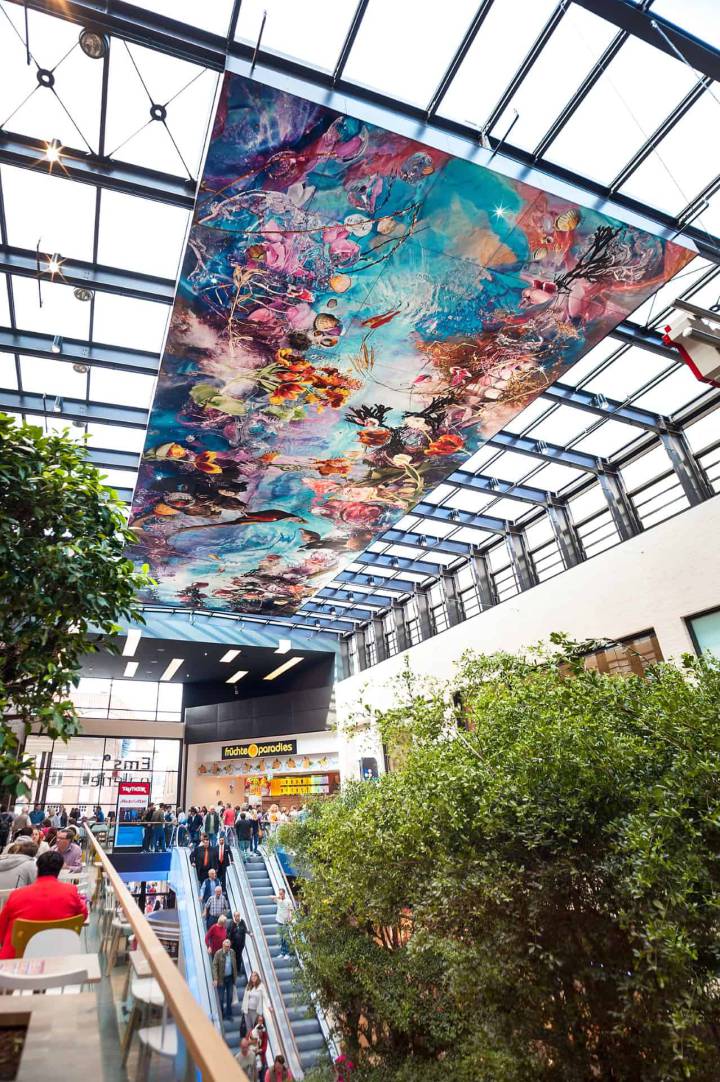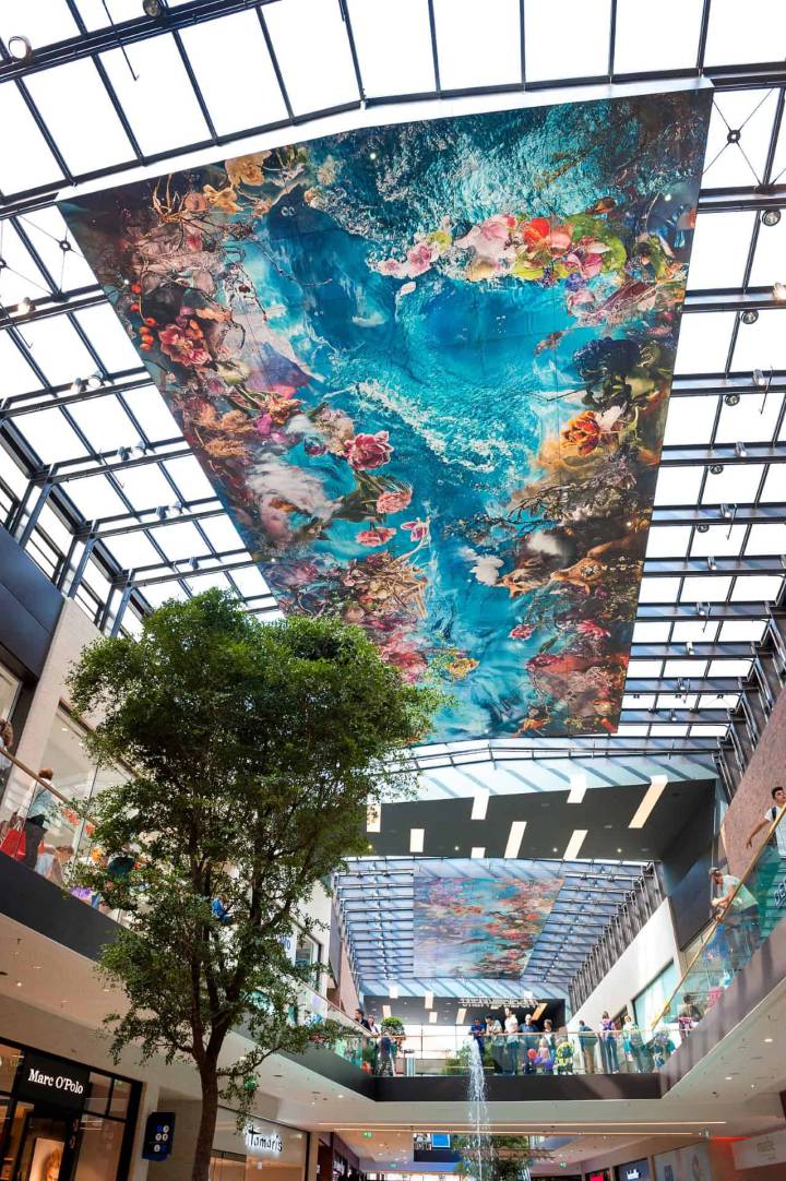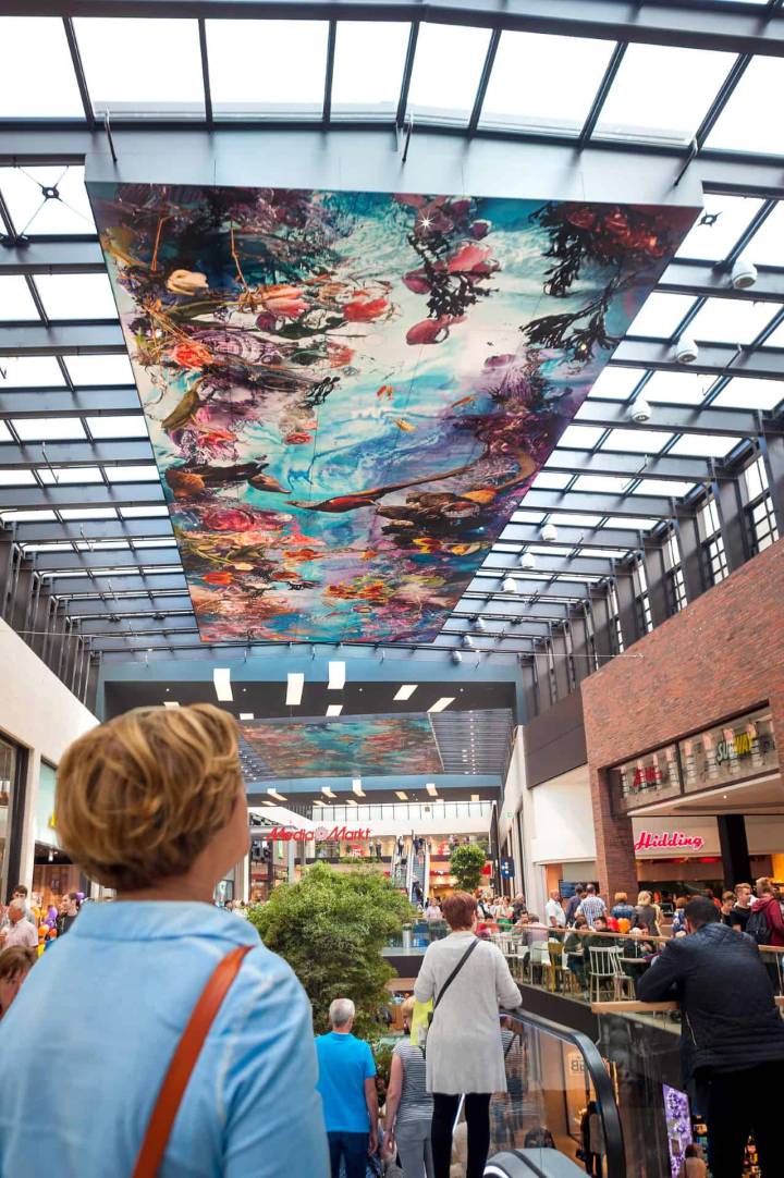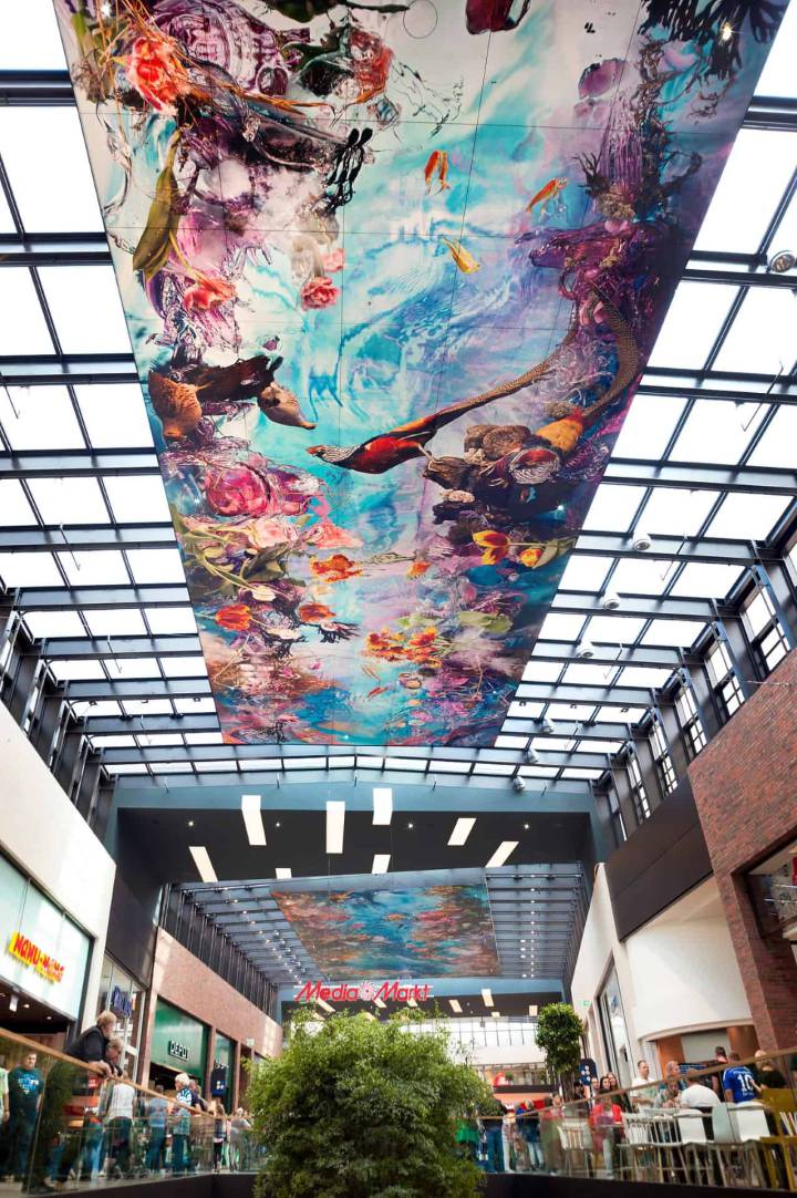 The added value of art is particularly high in a public place like this.Because the artwork gives visitors something to look at extensively, whereby the duration of stay is extended, it offers shopkeepers the opportunity to sell merchandise with more chance of bigger sales. In addition, the popularity of the shopping center has increased and with it the value of real estate in the area. In the first year, no fewer than 4.9 million people visited the Emsgalerie. That is comparable to the Markthal in Rotterdam!