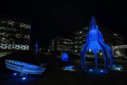 Deze sculpturen, tot wel zes meter hoog, zijn gemaakt van gerecycled PET-G kunststof en werden geprint in samenwerking met Colossus 3D printers. Het gebruik van gekleurd semitransparant gerecycled kunststof in de openbare buitenruimte is nieuw; hiervoor is door Mothership en Colossus met de Universiteit Hasselt onderzoek gedaan onder begeleiding van het lectoraat Kunststoftechnologie van Windesheim Zwolle. De kunststof compositie wordt gedragen door een stalen constructie, geproduceerd door Wilwy, en voor de avonduren ontwierp Lichtpunt een verlichtingsplan dat de kunstwerken subtiel benadrukt.