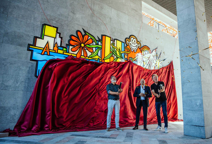Kroonenberg en Mothership formuleerden gezamenlijk een opdracht die ook past bij de ambities van de gemeente Almere voor het station en het gebied rondom. Op verzoek van Mothership maakte Kunstenaar Iwan Smit hierop een prachtig kleurrijk werk met de titel ‘Stad op Waterspiegel’. Het beeld vertelt het unieke verhaal van Almere, de stad die op de zeebodem gebouwd is, passend in de lijn van de Zeegroene Loper. Hij zich inspireren door kenmerken van Almere die iedereen herkent, zoals de opvallende gebouwen langs het Weerwater, de mascotte Ally de Aap van voetbalclub Almere City en het water en groen van de stad.