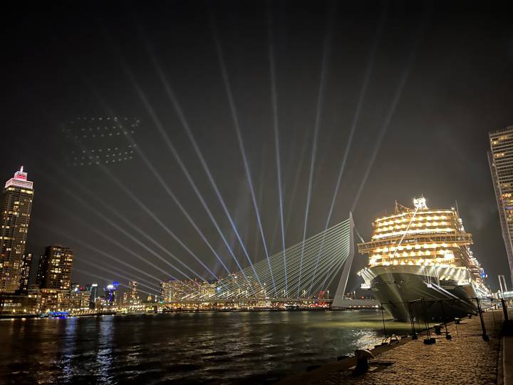 Projectie en lichtshow ter ere van het 150 jarige bestaan van de Holland America Line.