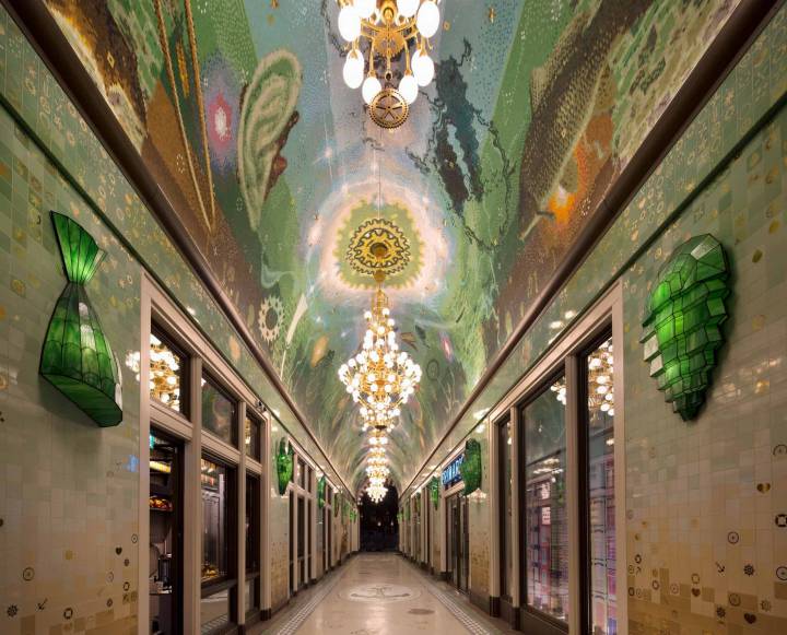 Refererend aan de geschiedenis van de beroemde passages in Europa, zoals de Passage du Grand Cerf in Parijs en de Hubertusgalerijen in Brussel, ontwikkelde Mothership een passend concept. Uitgaande van klassieke materialen met een nieuwe twist moest het geheel een tijdloze geest krijgen met een iconische uitstraling, met glasmozaïek, terrazzo, kroonluchters en barokke details.