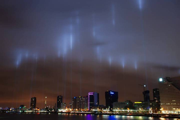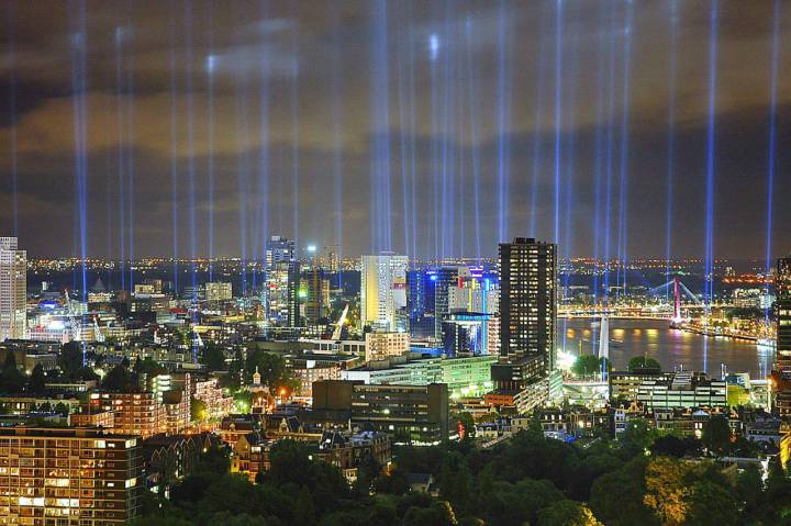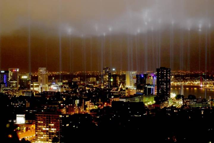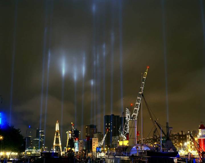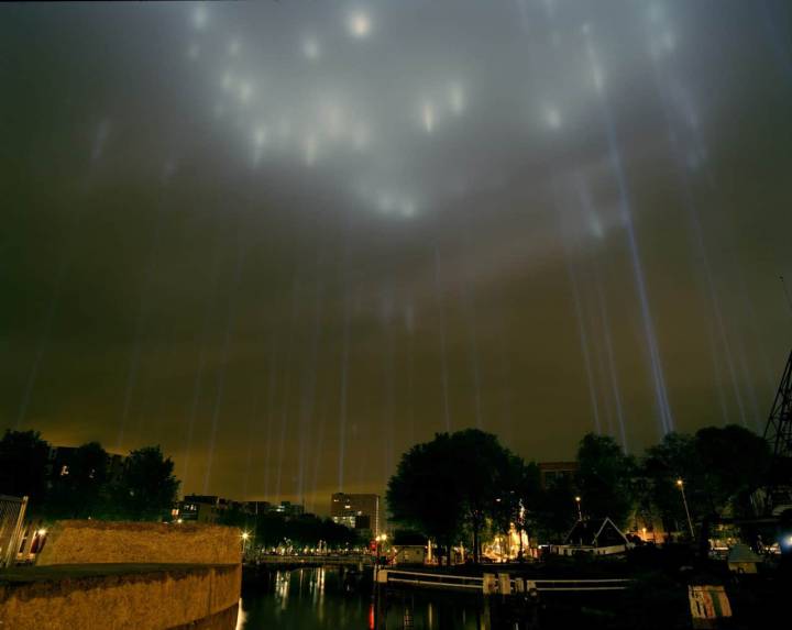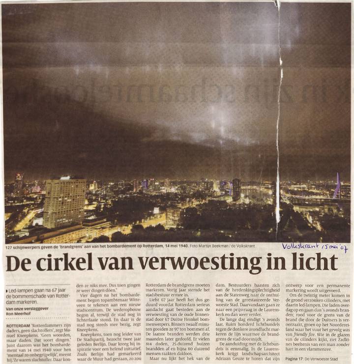 Op basis van deze principes werd besloten de Brandgrens weer te geven met behulp van immense lichtkanonnen. 127 lampen geven de rand van bebouwing van het centrum in de jaren veertig aan, in de nacht van 14 mei. Deze enorme lichtzuilen markeren elk een punt van de brandgrens. Samen tekenen ze met hun sterke lichtbundels de lijnen in de lucht of op het wolkendek. Zo kan iedereen het verwoeste en het nieuwe hart van Rotterdam ervaren.