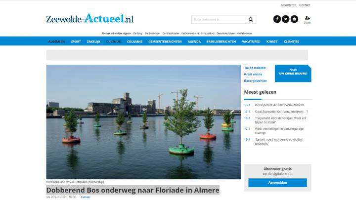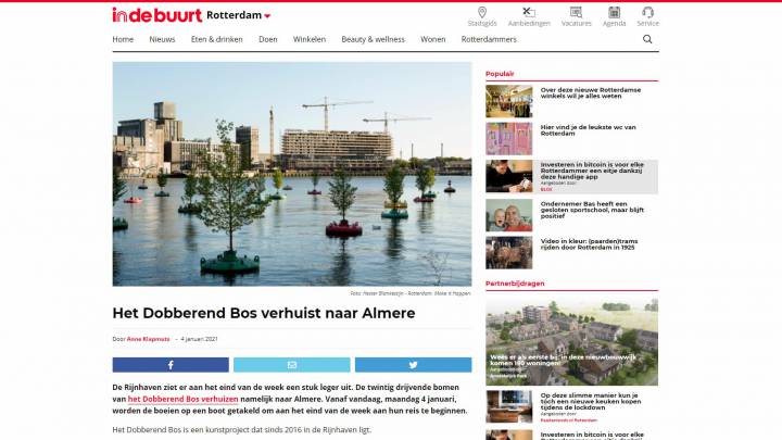 Het Dobberende Bos trekt wereldwijd aandacht, van Italië tot Scandinavië en van Iran tot Korea. Dat het mogelijk is gebleken om bomen geschikt te maken voor een toekomst op het water was groot nieuws. Niet alleen om dat het daadwerkelijk het eerste drijvende bos ter wereld is, maar ook omdat haar bestaan op een adequate wijze aandacht vraagt voor klimaatverandering en de stijging van de zeespiegel.
