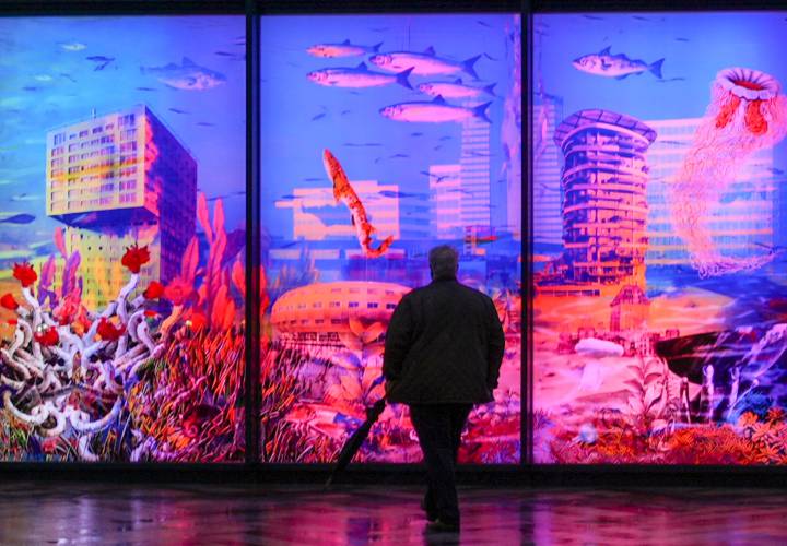 Kunstwerk-Almere doet dat op een voorbeeldige manier: het brengt op een wat dromerige surreële manier de relatie van water en Almere tot leven. Is dit de zee waaruit Almere is gewonnen? Of is dit een visioen van Almere als Atlantis? Het kunstwerk is niet eenduidig en geeft geen uitsluitsel. Als het goed is, geeft het ruimte om op andere manieren te denken en de openbare ruimte te beleven. Het werk zoekt nadrukkelijk een relatie met het vernieuwde stationsgebied, waarin niet de bakstenen en imponerende pleinen en gebouwen en beelden centraal staan, maar waarin de kwaliteit beleving centraal staat, door heuveltjes, prachtige tuinen en paadjes.
