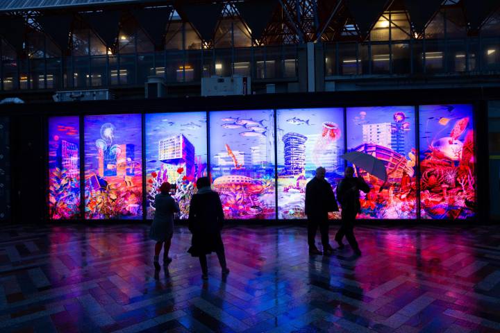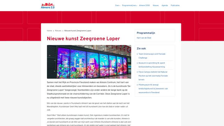 Mothership ontwikkelde voor de gemeente Almere een visie die gebaseerd is op juist die bijzondere geschiedenis: Almere als nieuwe stad, gebouwd op de zeebodem. Onder de overkoepelende titel ‘De Zeegroene Loper’ deed Mothership een serie samenhangende voorstellen om de binnenstad, tussen CS en het Weerwater, te vergroenen (zeegroen…) en aantrekkelijker te maken. Om in die nieuwe stad iedereen te laten ervaren wat die bijzondere kwaliteit, die unieke identiteit, van Almere is. Eén van die parels is Kunstwerk-Almere; de perfecte verbeelding van die visie!