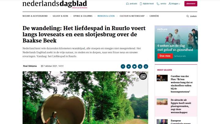 Ruurlo is een klein stadje in één van de mooiste delen van ons land, de Achterhoek. Midden tussen bossen en velden ligt pannenkoekenboerderij de Heikamp. Hier zwaait Bert van Zijtveld de scepter. Hij ontwikkelde het naastgelegen Klimbos en opperde het idee voor het Liefdespad.