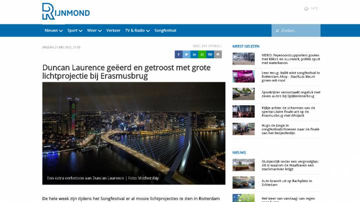 Voor 2020 stond het Eurovisie Songfestival (ESF) gepland in onze thuisbasis Rotterdam. Mothership was een van de partijen die door de Gemeente was uitgenodigd om een plan in te dienen om het ESF plus de stad (inter-)nationaal in het licht te zetten. De opdracht was ‘Denk groot!’ en dat deden we. We ontwikkelden een concept dat groot genoeg was om wereldwijd aandacht te trekken.