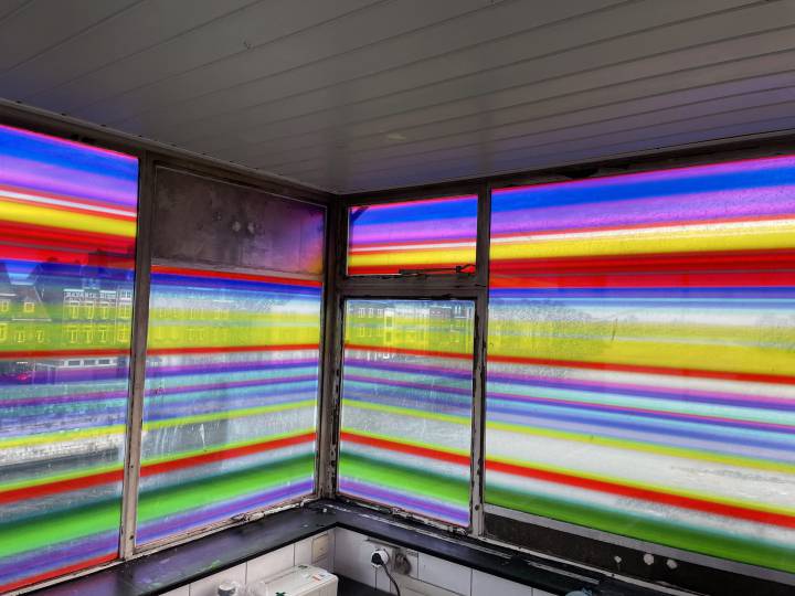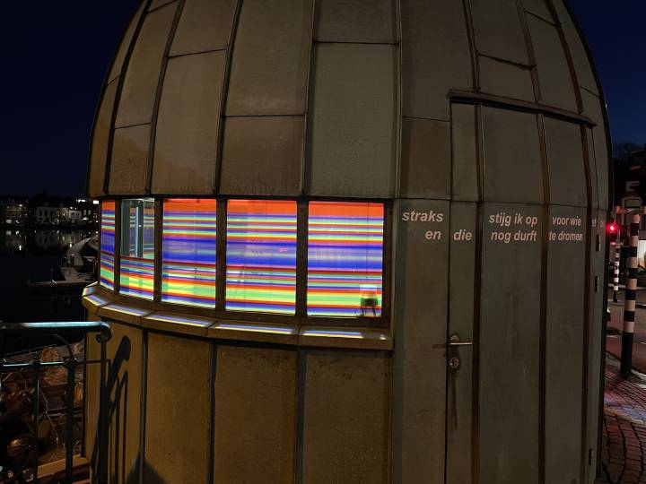 De ramen van het brugwachtershuisje worden van binnen voorzien van een transparante kleurrijk bedrukte folie met transparante inkt. Dit concept is voor alle 12 huisjes gelijk om de samenhang in het landelijke project te laten zien. Het kleurenpalet van de folie refereert overal aan dag en nacht, aan bijzondere vergezichten, aan water en de lucht, aan een geabstraheerd stedelijk landschap, aan de kleuren van de stad. Per stad is gekozen voor een specifiek kleurenpatroon dat het karakter van de stad of provincie en (cultureel gebonden) kleuren weergeeft.