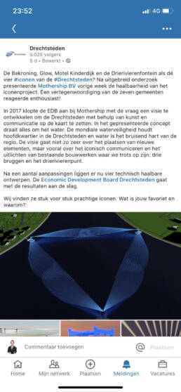 Motherships expertise op het gebied van de communicatie van identiteit en imago door kunst bewees zich bij het ontwikkelen van de visie en het concept voor de iconen voor de Drechtsteden. Haalbaarheidsonderzoek wees uit dat de plannen op sommige punten nader onderzocht, aangepast of herzien moeten worden. Daar zetten we de komende tijd op in. Daarnaast wordt begonnen met de realisatie van het eerste icoon.