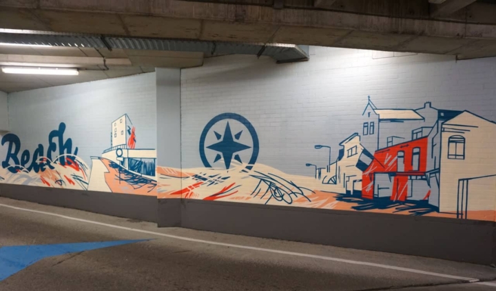 De hele entree van de parkeergarage is vernieuwd. In opdracht van de Gemeente Den Haag voor BKS Parking is er een hele nieuwe entree ontworpen waarin drie thema’s terugkomen: Koninklijke stad, stad aan het strand en stad van vrede en recht. Met stickers en diverse muurschilderingen zijn deze thema’s verbeeld. Mothership heeft dit project geproduceerd en begeleid.